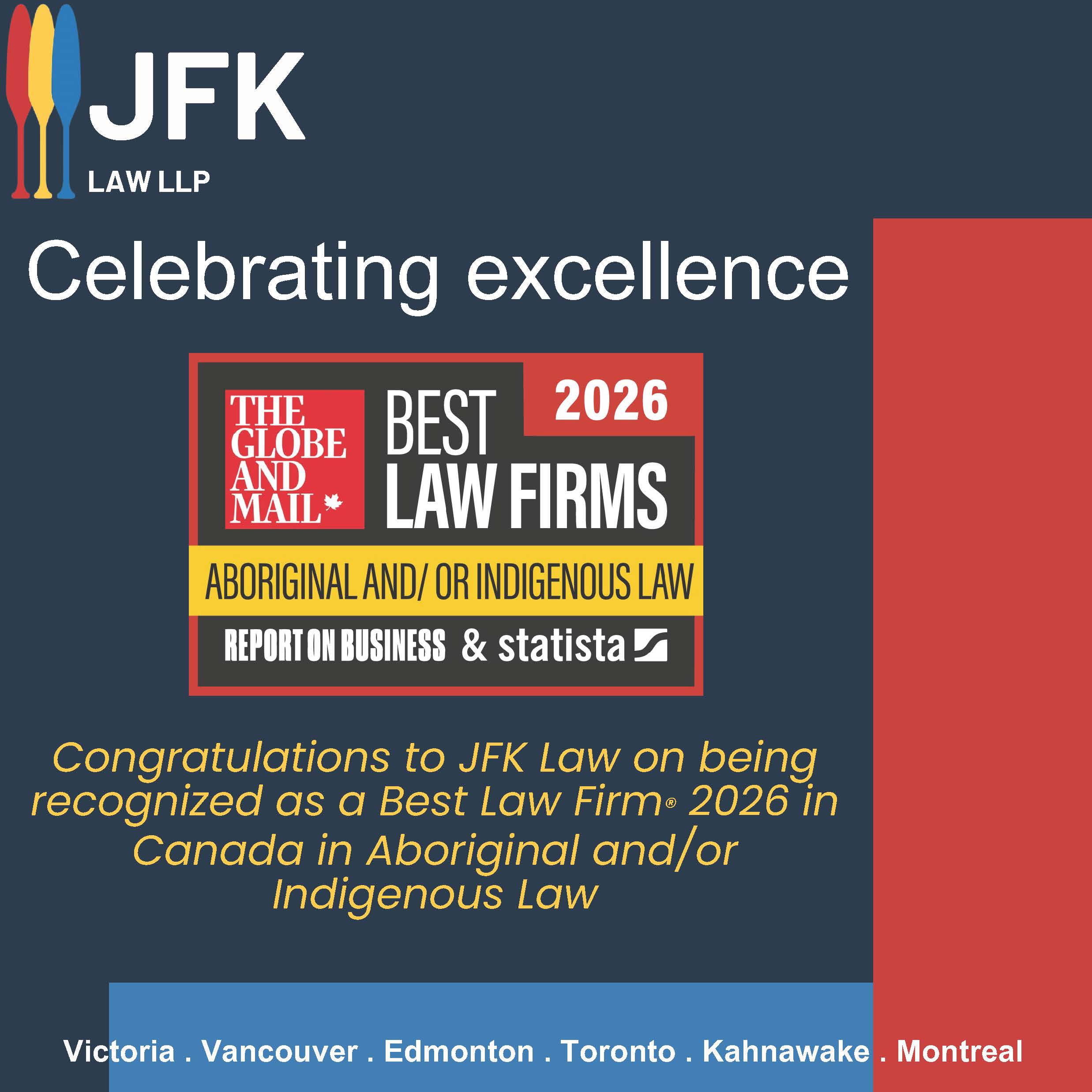 Congratulations to JFK Law on being recognized as a Best Law Firm® 2026 in Canada in Aboriginal and/or Indigenous Law.