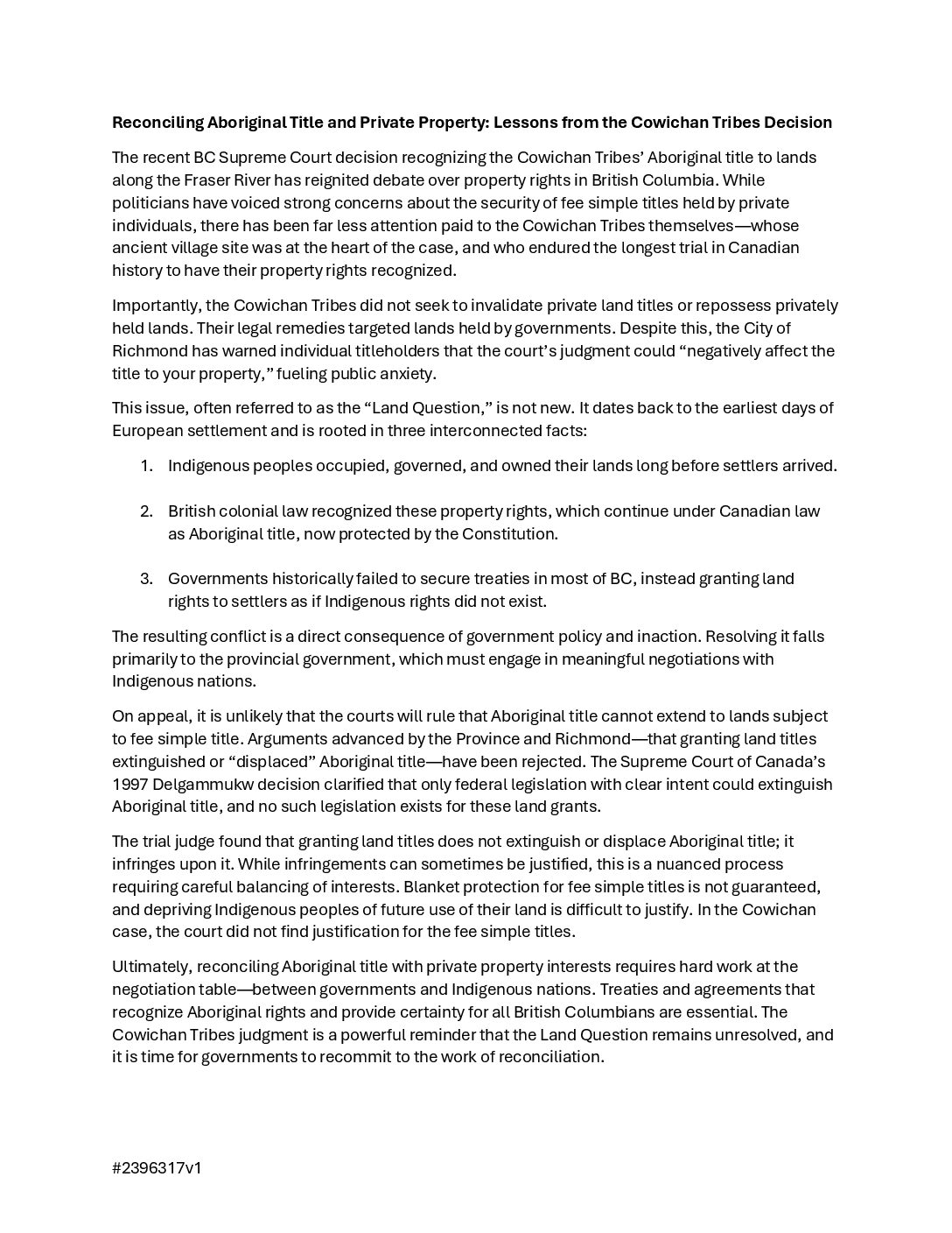 Reconciling Aboriginal Title and Private Property_ Lessons from the Cowichan Tribes Decision