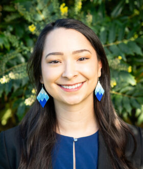 Outside of the office, Ashley enjoys beading, jingle dancing, and learning guitar and Nêhiyawêwin (the Cree language).